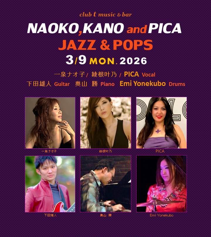 J.U.ジェイウー・PICA (Vocal) 下田雄人 (Guitar) 松井玲央 (Piano) 中林創造 (Bass) Emi Yonekubo (Drums) OPEN 19:00・CLOSE 23:30【空席有り】 STAGE 20:00 より 2 セット<入替えなし・22:20 終了予定> ☆【Seats Available】Please use the reservation form to make a reservation.