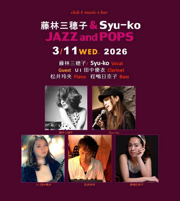 一泉ナオ子 ・ 吉川水砂子・Eureka (Vocal) Akane (Flute) 原とも也 (Guitar) 三木成能 (Piano) OPEN 18:30・CLOSE 23:30【空席有り】 STAGE 19:30 より 3 セット<入替えなし・23:00 終了予定> ☆【Seats Available】Please contact us to call 03-3423-9765 after 5pm.