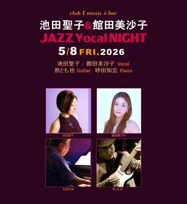 ~ 山崎のぶこ & レイカバンド~ 山崎のぶこ (Vocal) 青山レイカ (Guitar)西田純子(Piano) Nagisa (Bass) 小澤 舞 (Drums) OPEN 18:30・CLOSE 23:30【空席有り】 STAGE 19:30 より 3 セット<入替えなし・23:00 終了予定> ☆【Seats Available】Please use the reservation form.