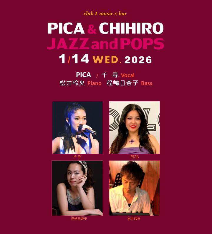 繊細でダイナミックにジャズやポップスを聞かせて下さるPICAさん、爽やかな歌風で活動中のシンガー千尋さんの”ジャズ&ポップス”。