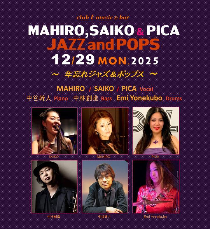 STAGE 19:30 より 3 セット<入替えなし・23:00 終了予定> ☆【Seats Available】Please use the reservation form 「ご予約はこちら」to make a reservation.